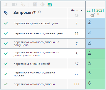 Мы пишем текст на 4 тыс. символов, соответственно используем 6 ключей. В большинстве случаев более мелкие запросы уже будут включать в себя более крупные, например «перетяжка кожаного дивана цена» уже включает в себя ключ «перетяжка кожаного дивана», исходя из этого мы можем объединять и комбинировать ключи. Чем частотнее ключ, тем больше раз мы его упоминаем в тексте: